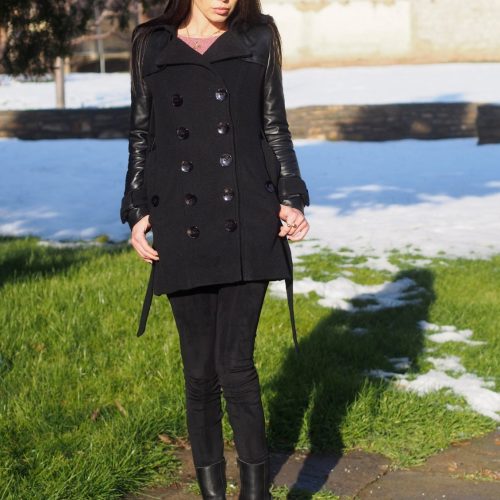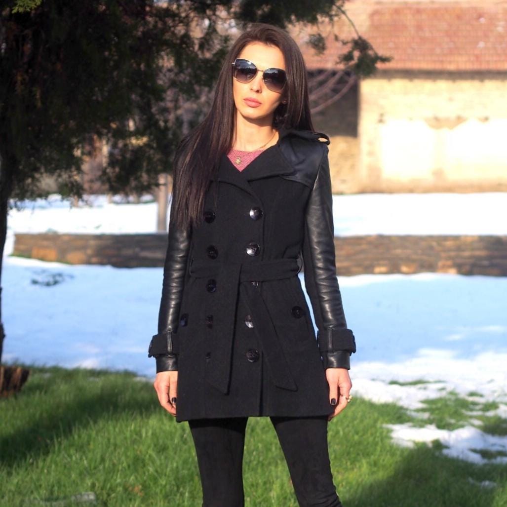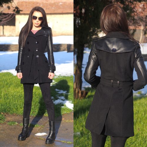 Extravagant Black Cashmeere Coat Women Leather Elegant Wool