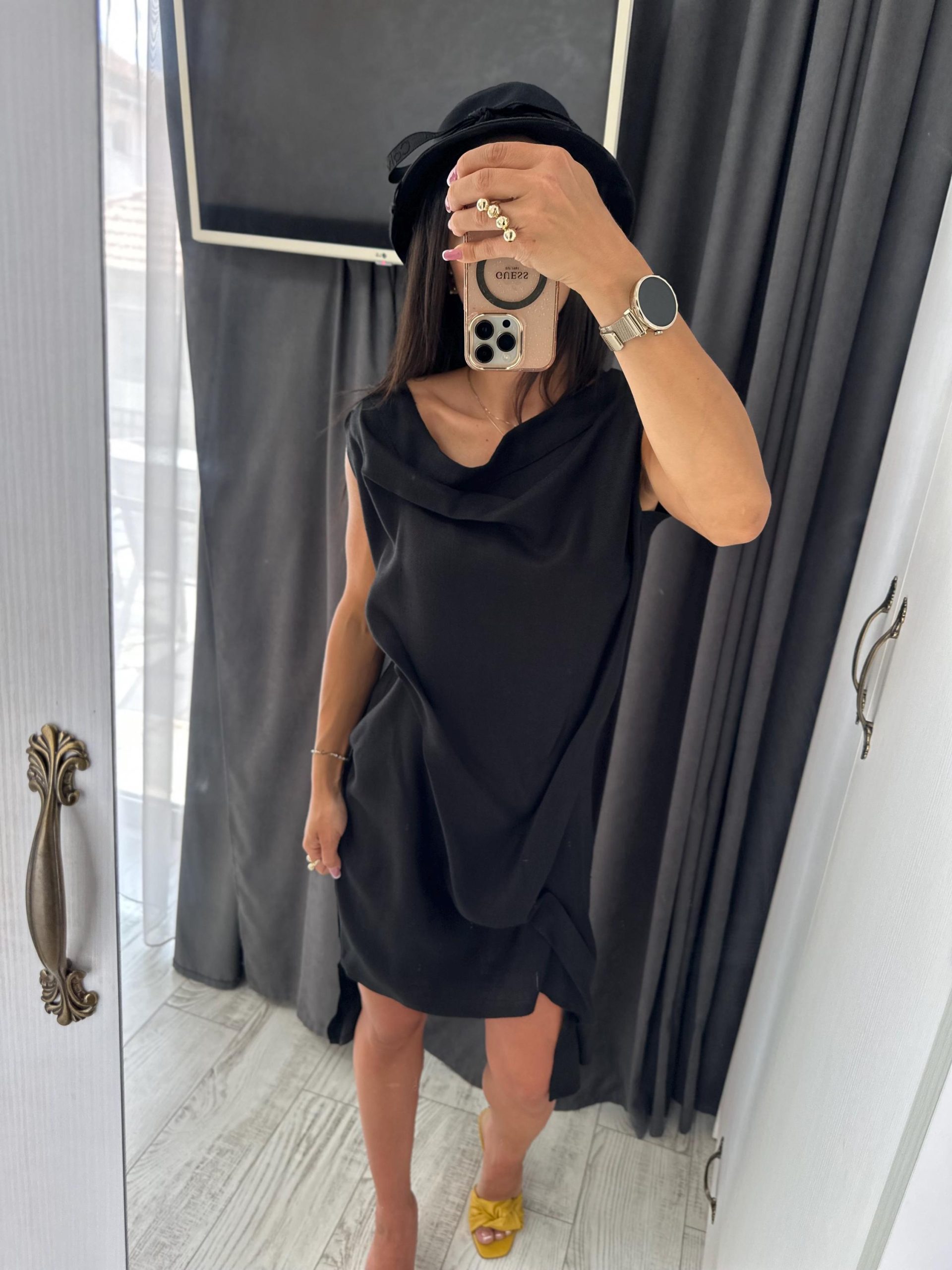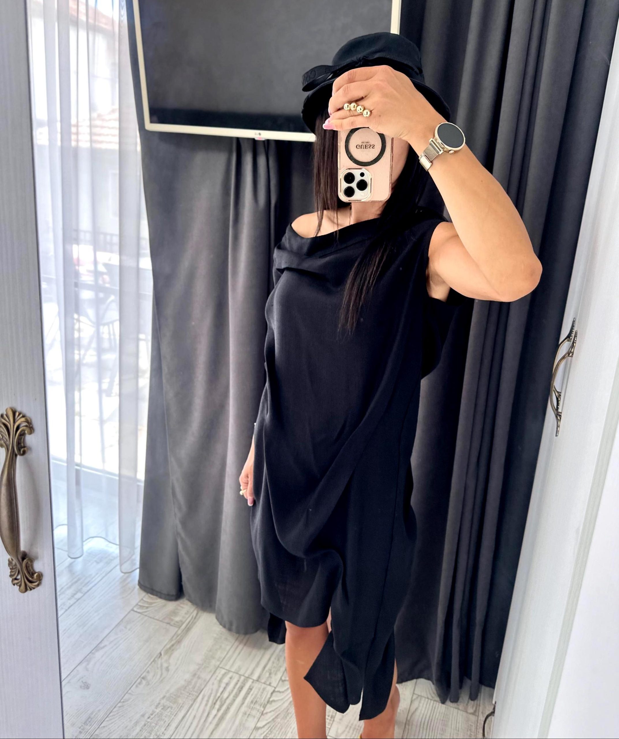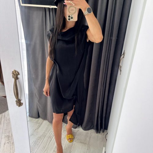 Extravagant black asymmetrical linen dress, suitable for your summer party days, extremely comfortable and convenient linen dress for women