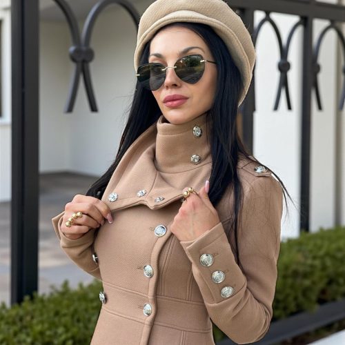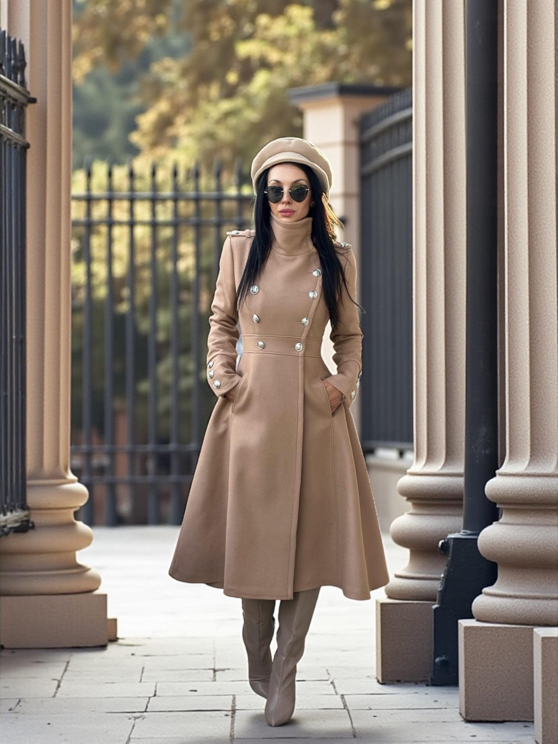 Long Camel Wool Coat For Women Elegant Double