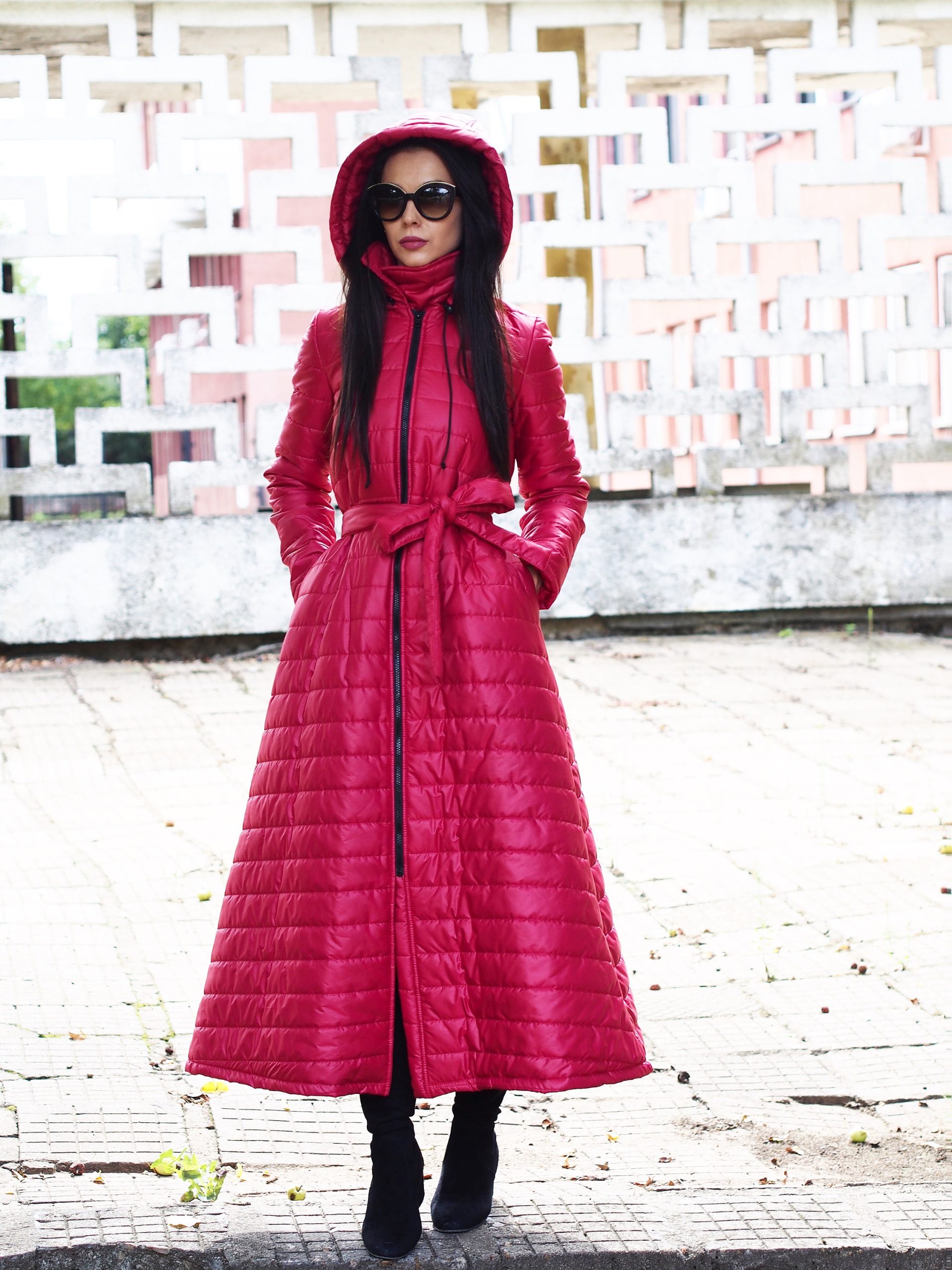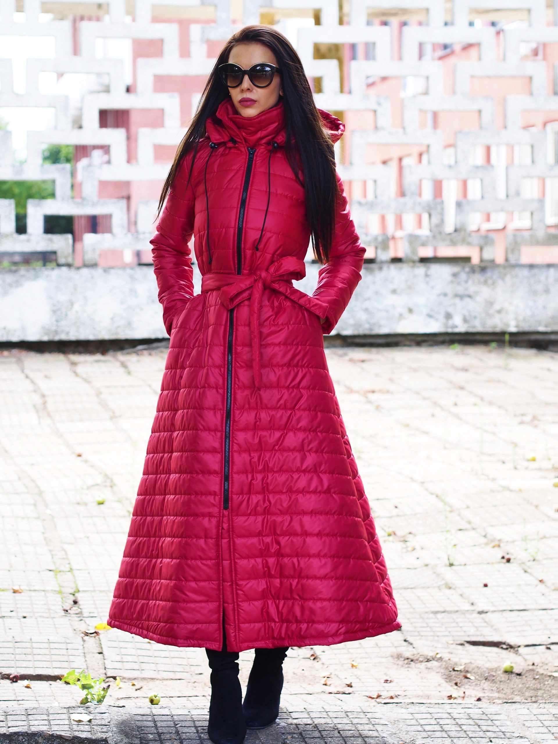 Red Long Coat Women Winter Quilted Qulted Jacket