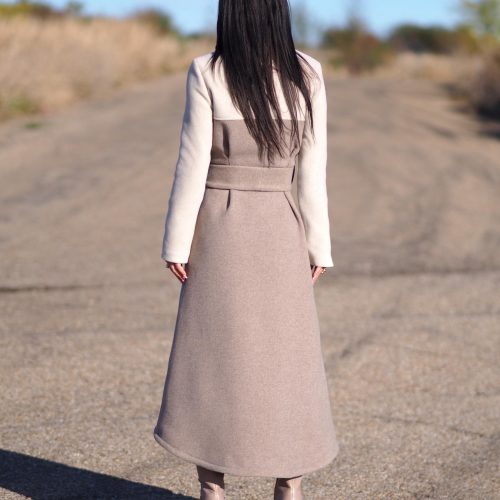 Wrap yourself in elegance and sophistication with this luxurious two-tone wool coat, meticulously handmade in our atelier.