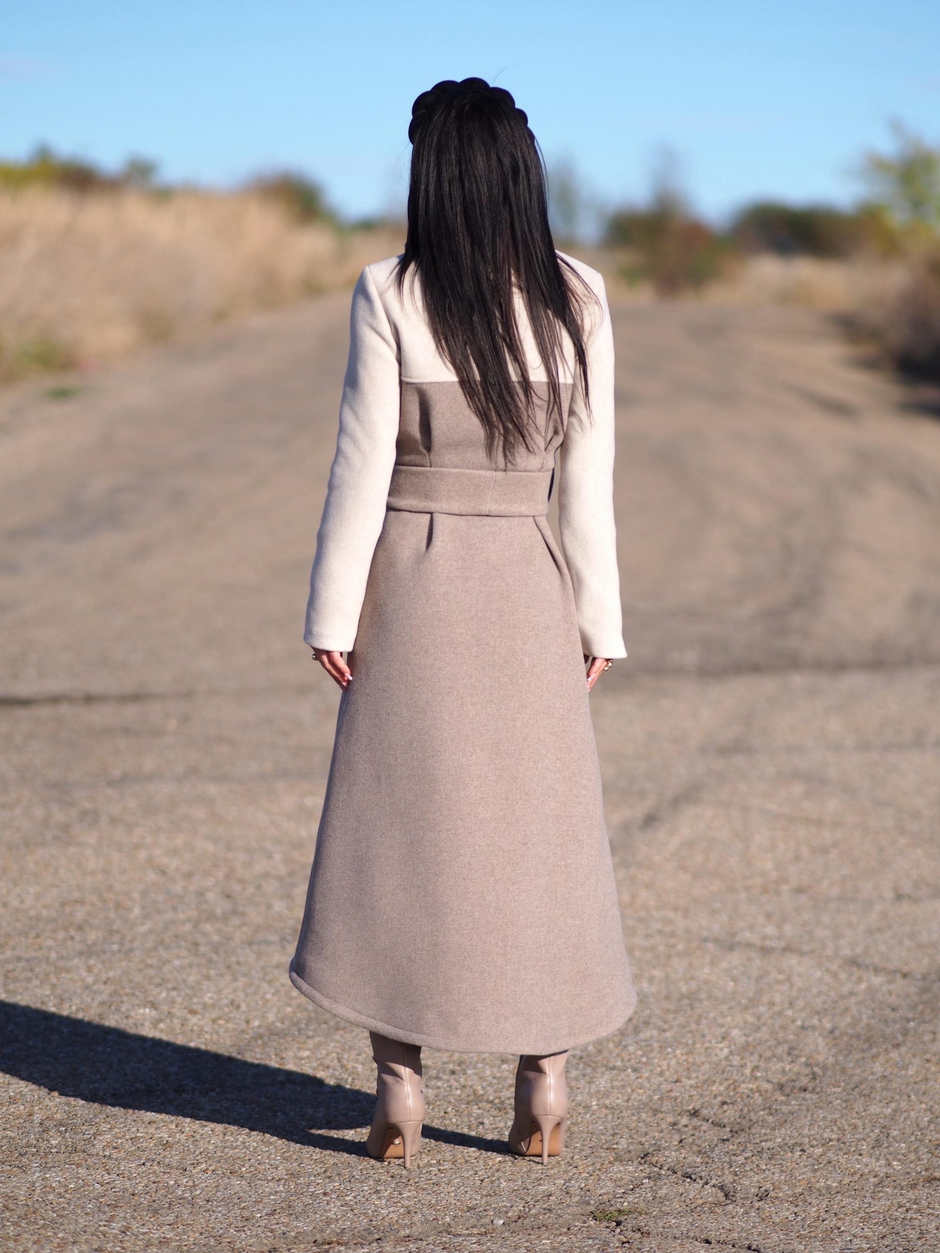 Designer Two-Tone Wool Coat Chic, Modern & Timeless